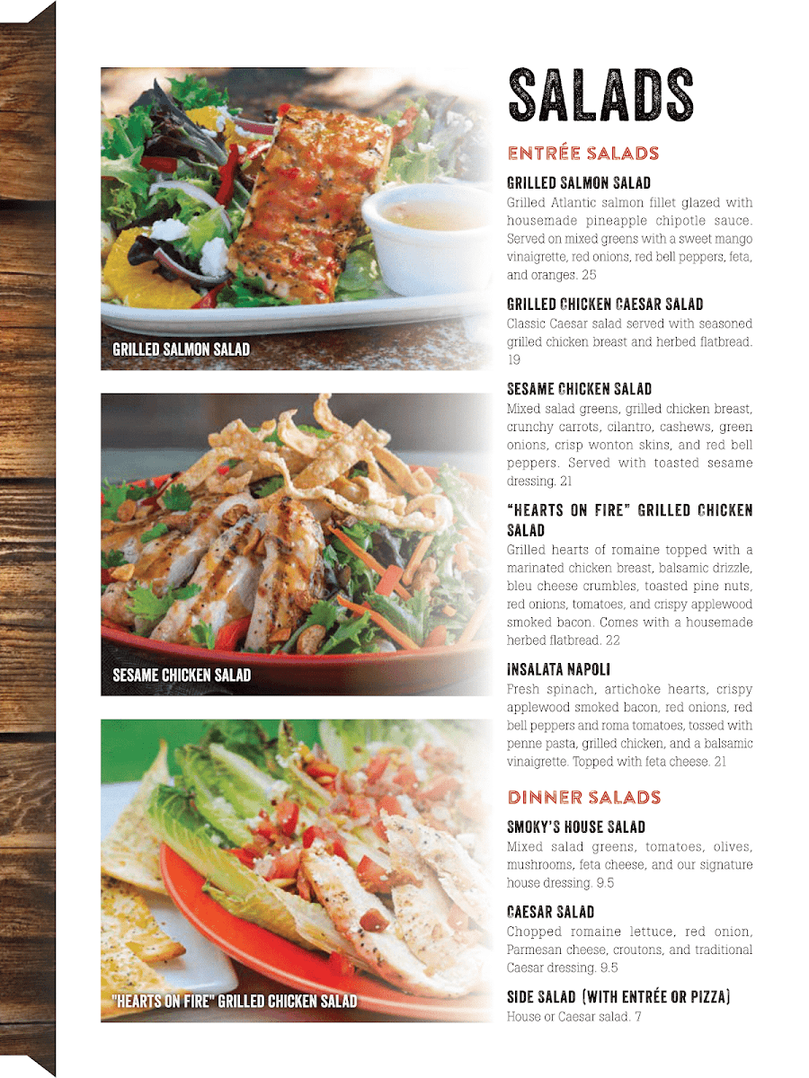 8 oz. Served on crispy onion strings and topped with a smoked tomato bacon sauce. Choice of side: a grilled romaine heart salad or bacon mac and cheese