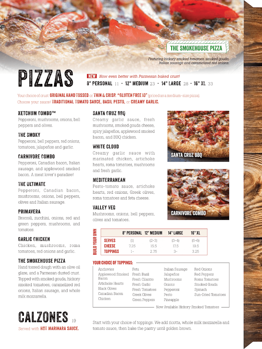 Hand tossed dough with an olive oil glaze, and a parmesan dusted crust. Topped with smoked gouda, hickory smoked tomatoes, caramelized red onions, Italian sausage, and whole milk mozzarella