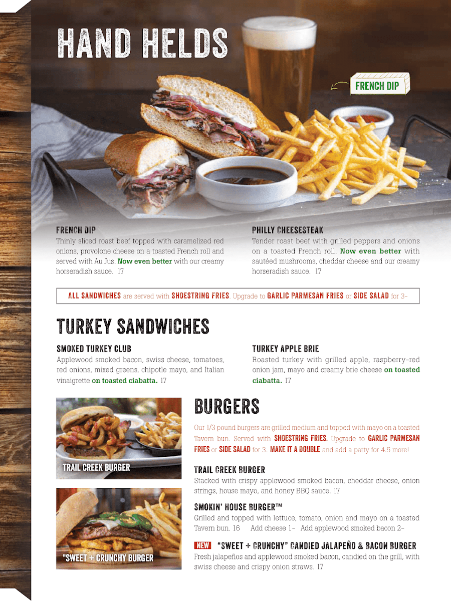 Thinly sliced roast beef topped with caramelized red onions, provolone cheese on a toasted french roll and served with au jus. Now even better with our creamy horseradish sauce