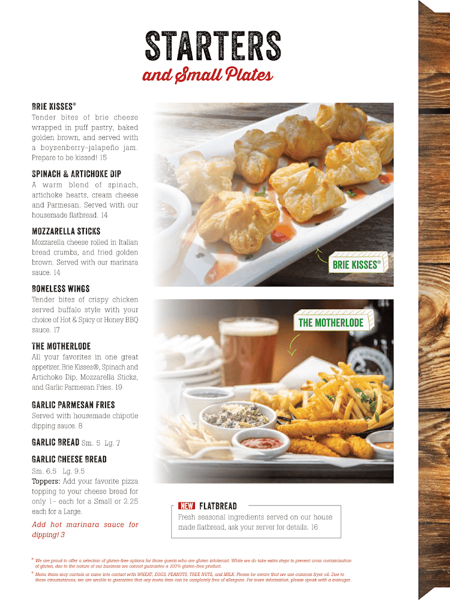 All your favorites in one great appetizer. Brie kisses, spinach and artichoke dip, mozzarella sticks, and garlic parmesan fries